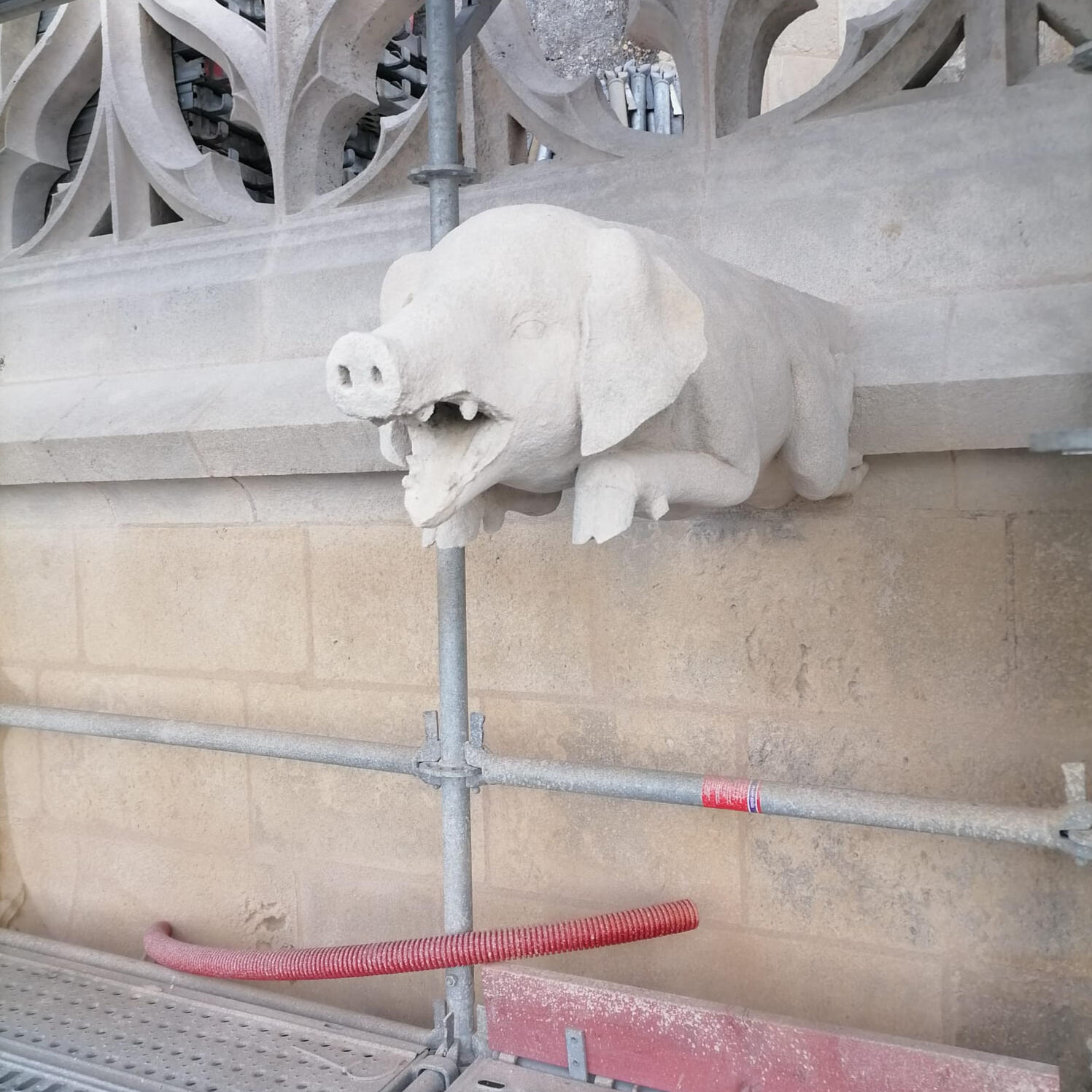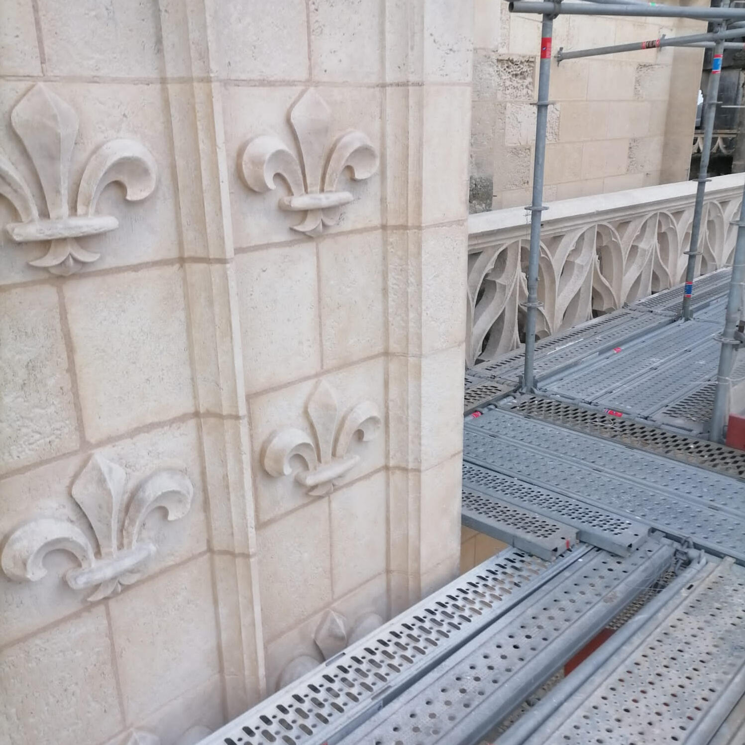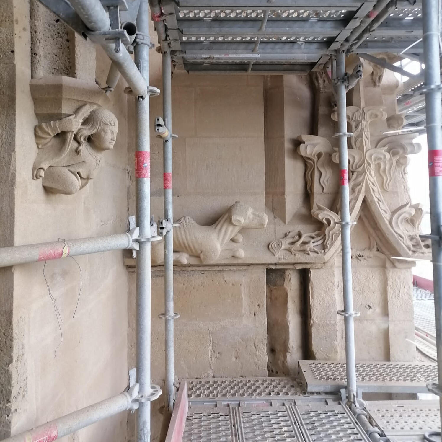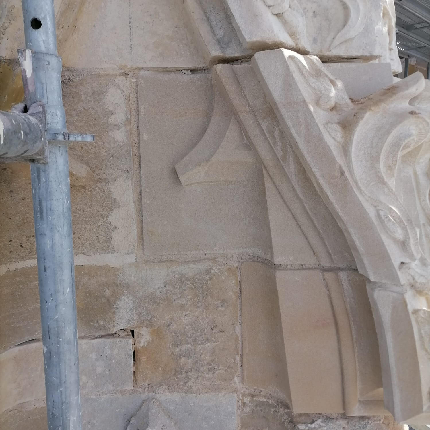 Coupe de pierre, polychromie clef de voûte cathédrale de Bayonne