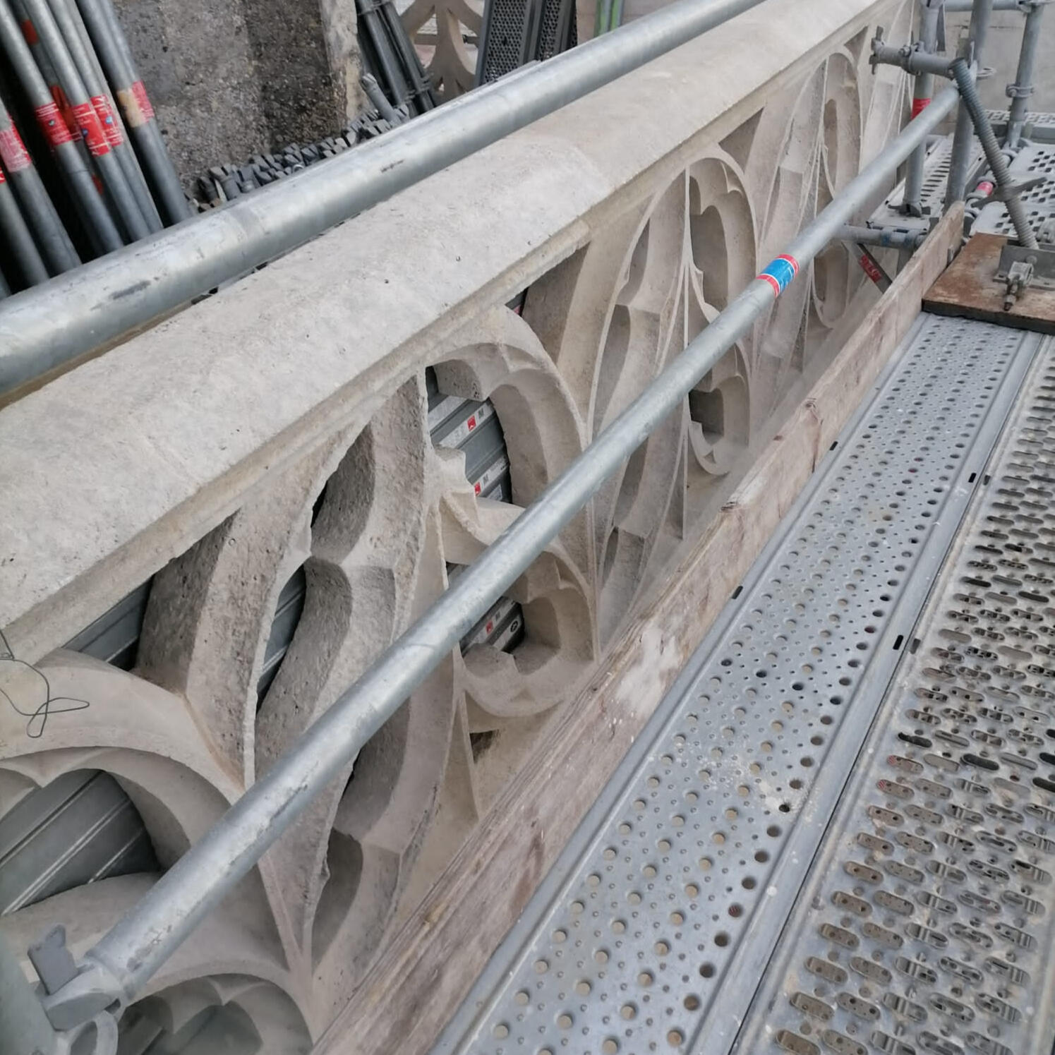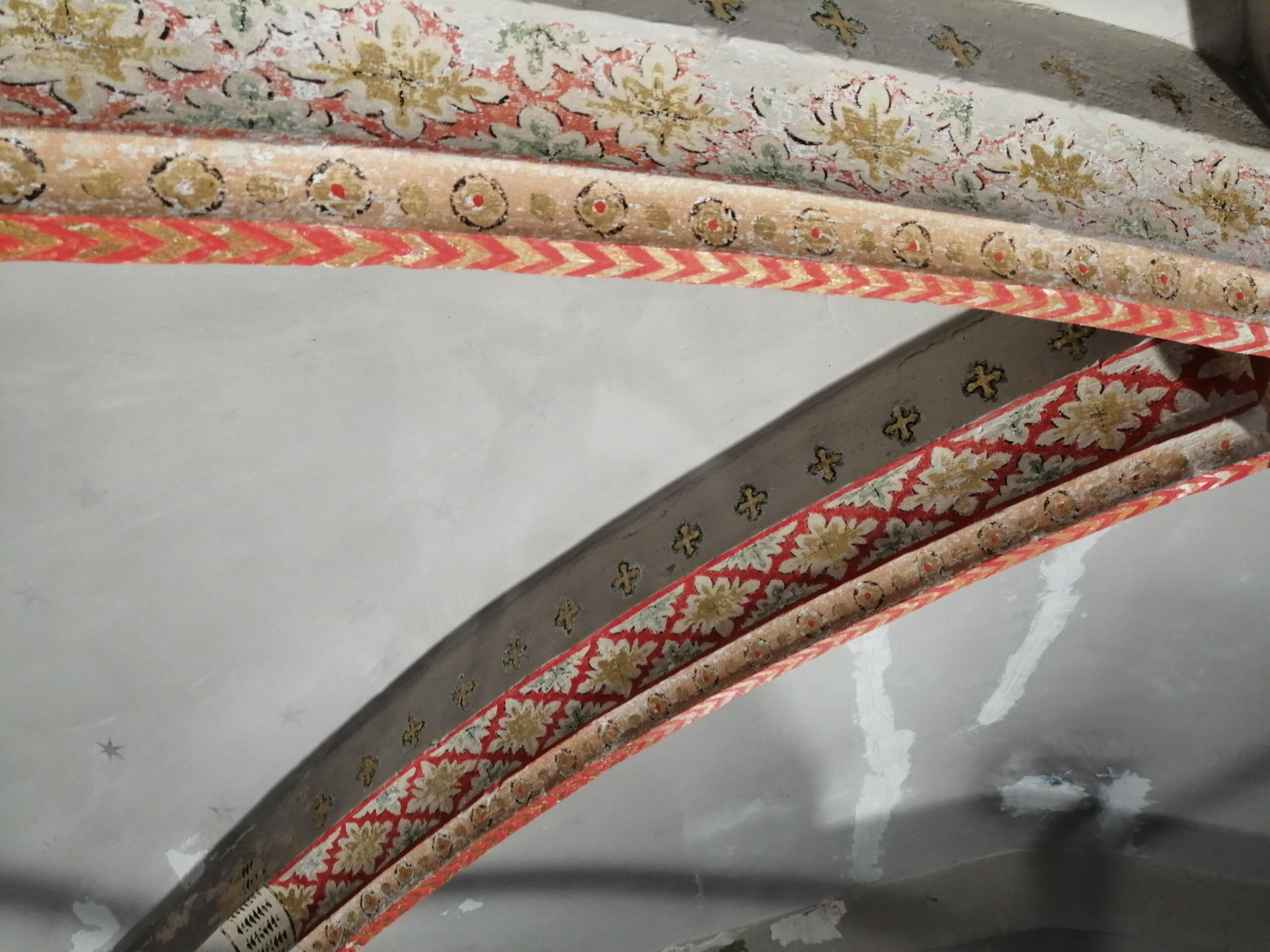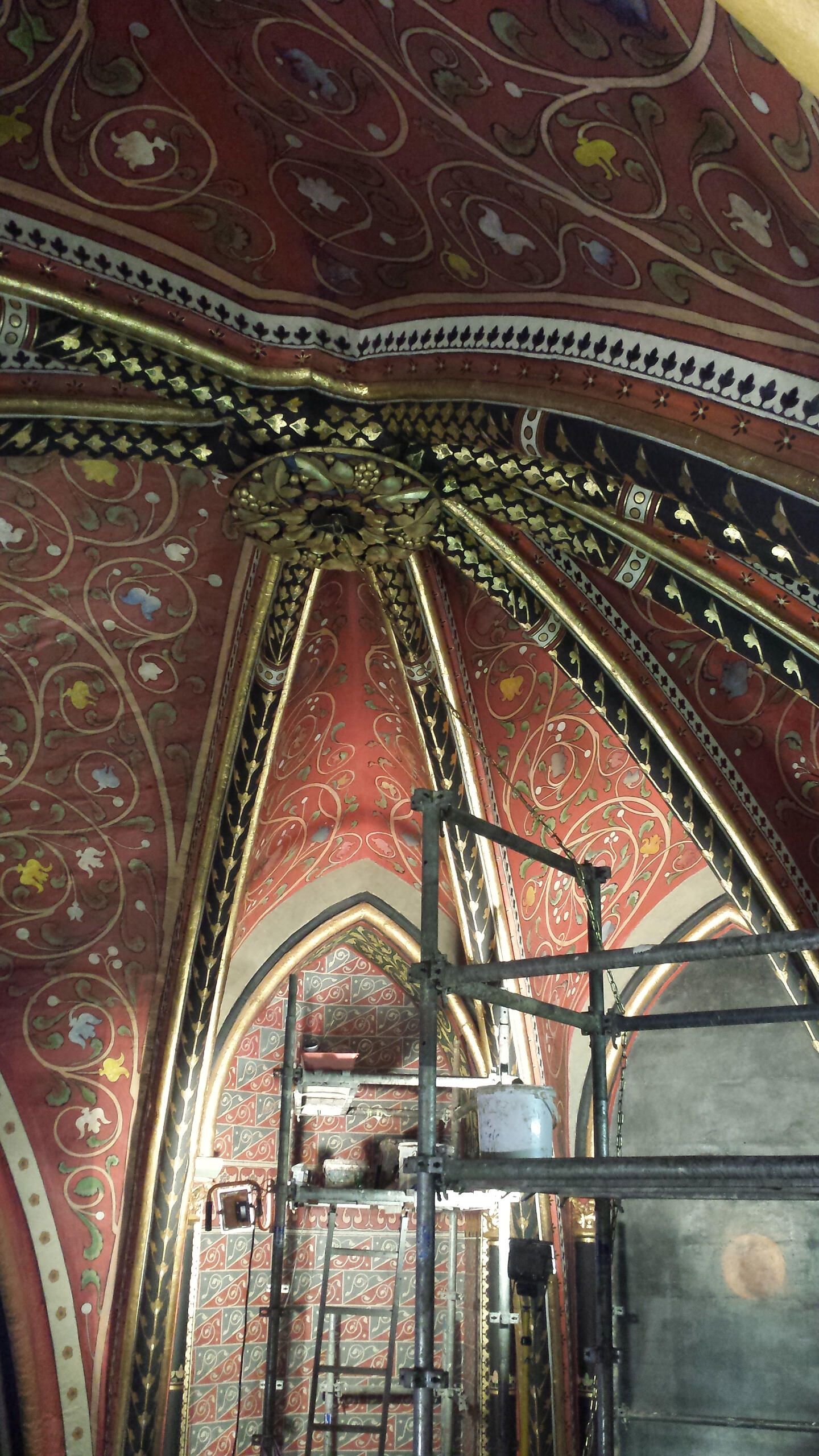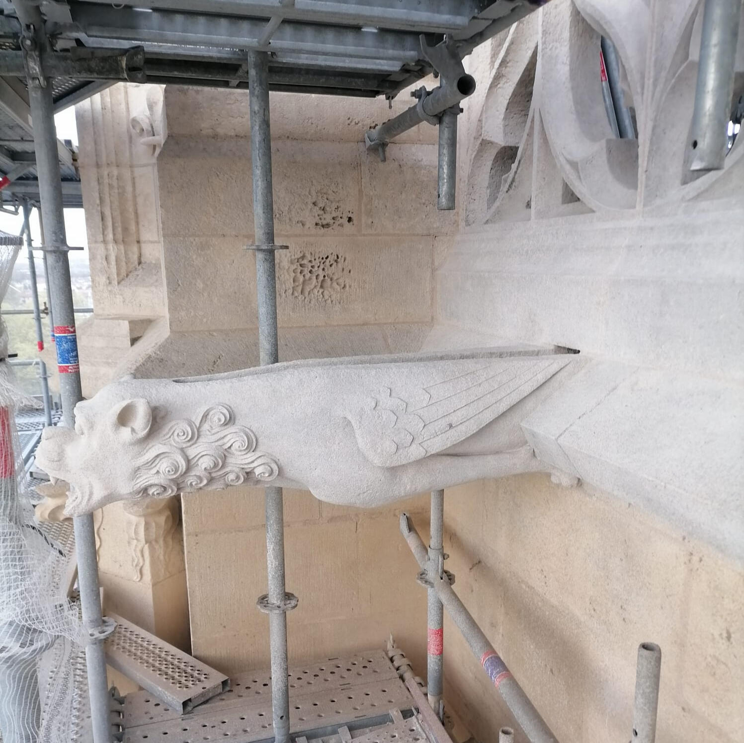 Coupe de pierre, polychromie clef de voûte cathédrale de Bayonne