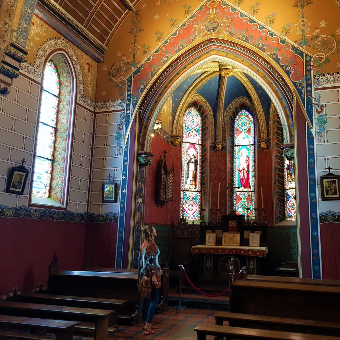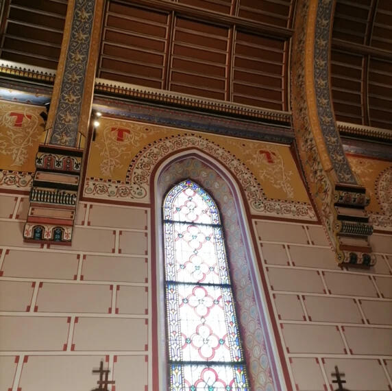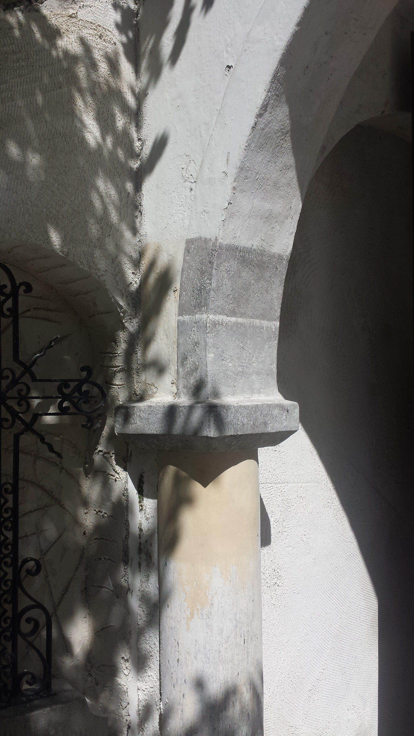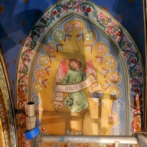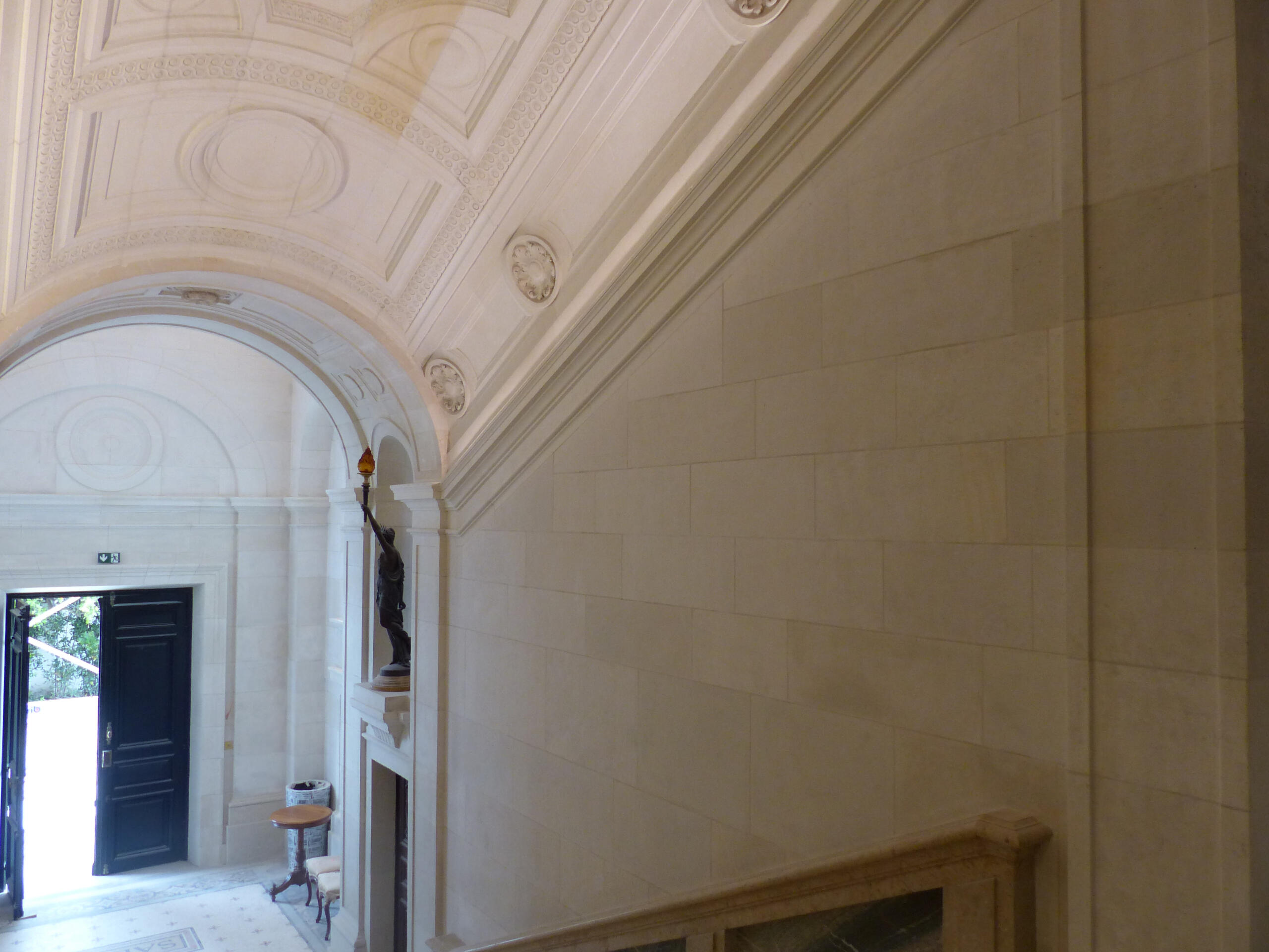 Coupe de pierre, polychromie clef de voûte cathédrale de Bayonne